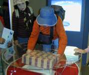 ちょうどコースの中程にある博物館(←)。入場無料ということもあり、休憩ポイントとしてウォーキング参加者でにぎわいました。 ここの人気展示は「一億円を持ちあげてみよう(→)」。テイクアウト不可。