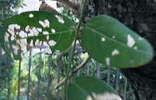 葉っぱは形、大きさともにエンジュに似てます。 落ち葉に紛れて松葉のような芯も落ちてます。 見分け方としては実の付き方。ニセアカシアは実のなさそーな、まずそーな、 平べったい実をつけます。 本当のアカシアではないのでニセアカシアと呼ばれてますが、日本でアカシア といえばこれをさします。
