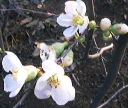 名前がかわいそうなくらい愛らしくて可憐な花。ボケは惚けからではなく、木瓜(モッケ)がなまった呼び名だそうです。