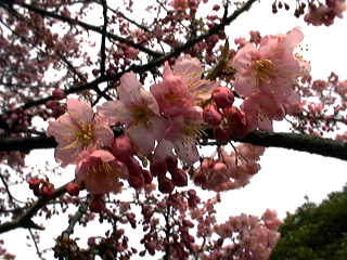 早咲きの桜の1種です。 咲いている時は薄いピンクですが、青い色素も入っているらしく、落ちた花を押し花にしてたら、すみれのような紫になってしまいました。 蜜も多くて紙はべとべとです。