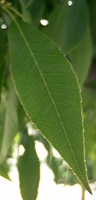 細長い葉っぱ。裏を返すとちょっと白っぽい。縁はぎざぎざ。