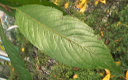 柳みたいな枝っぷりに、縁がぎざぎざなバラのような葉っぱとくればシダレザ クラ。